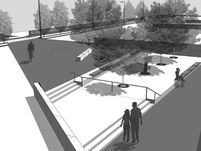 L’accesso pedonale avviene, pertanto, mediante percorsi separati da quelli veicolari e in un ambito di relazione coerente degli stessi al ruolo pubblico che devono avere. La pista ciclopedonale è separata dalla via Olimpia mediante un’aiuola con vegetazione a basso fusto, mentre a confine con l’area a parcheggi l’aiuola sarà arredata con vegetazione ad alto fusto. Le differenti quote altimetriche tra lo spazio pedonale a sud e l’area parcheggio organizzano l’accesso a quest’ultimo mediante scale e rampe, che oltre a definirsi quale sistema di collegamento, diventano anche il fondamentale elemento di riconoscibilità e di relazione dell’intera area. Tra esse s’installano delle aree attrezzate con sedute e alberi che permettono la sosta e ritagliano delle aree protette dai percorsi veicolari.